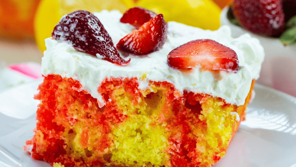 This strawberry lemonade poke cake recipe combines sweet and tart in the best way possible, using strawberry Jello and lemon frosting for a bold bite. It’s one of the most refreshing poke cake recipes out there.
