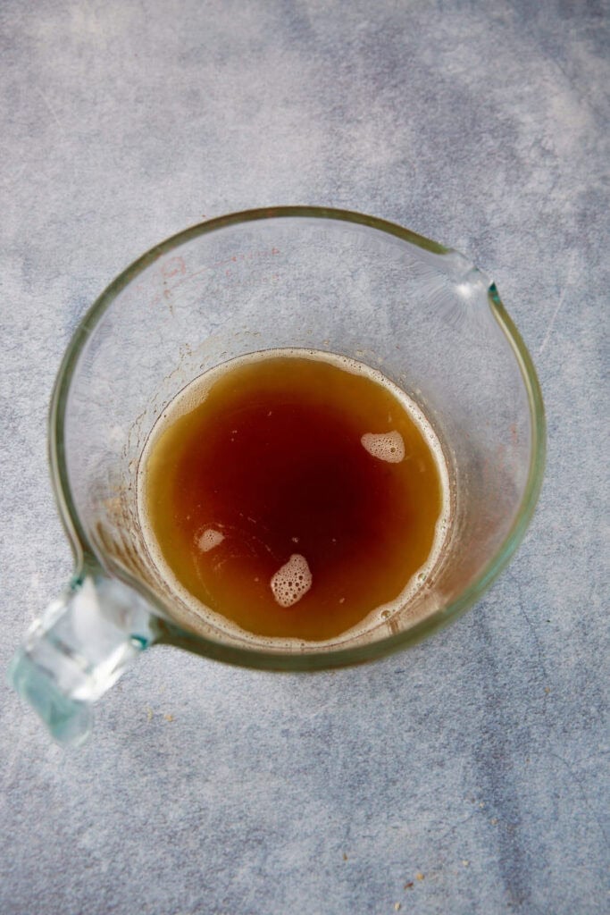 - Add butter to a saucepan and cook over medium high heat until it just starts to turn amber, about 3-5 minutes. Immediately remove to a glass bowl and allow to cool, then add vanilla.