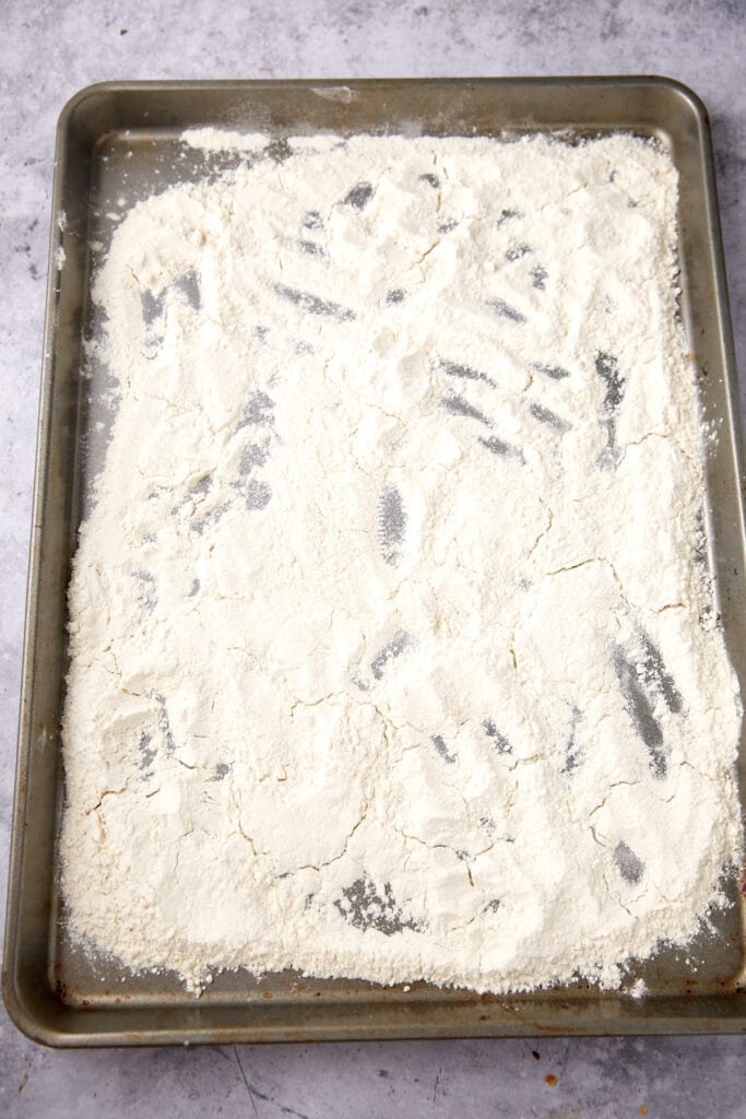 - Bake the flour on a rimmed cookie sheet at 350º for 7 minutes. Allow to cool.