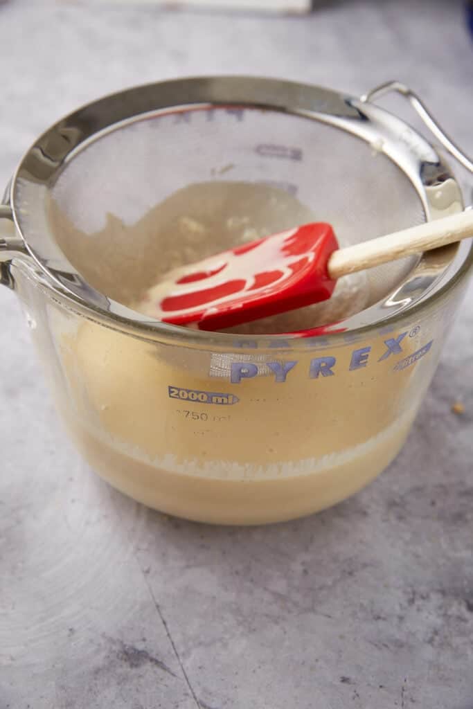 Tip: Discard the residue after straining the custard mixture. Don’t scrape and mix it into the custard.
