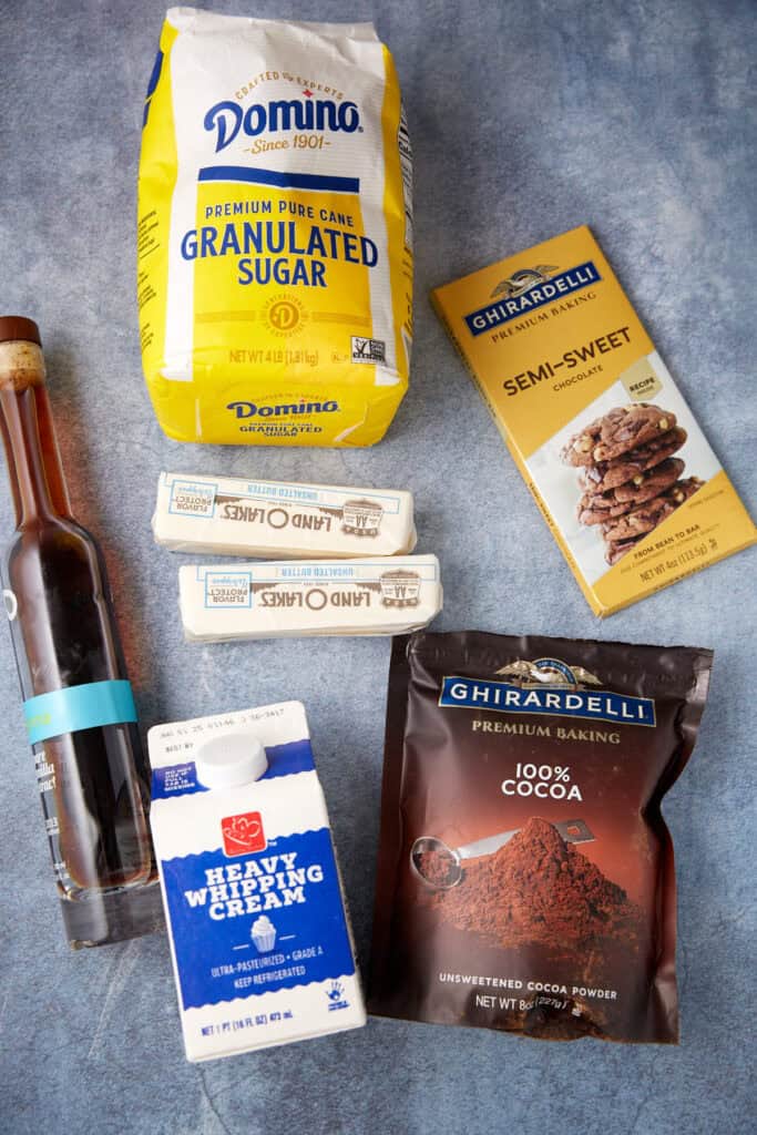 - Two types of chocolate make it rich, you’ll need both Cocoa powder and Semisweet chocolate or you can use dark for a more intense flavor.
