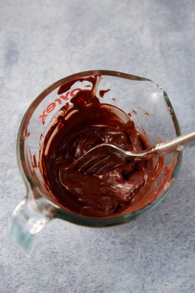 - Add chopped up chocolate to a microwave bowl and microwave at 50% for 2-3 minutes until melted. Let cool.