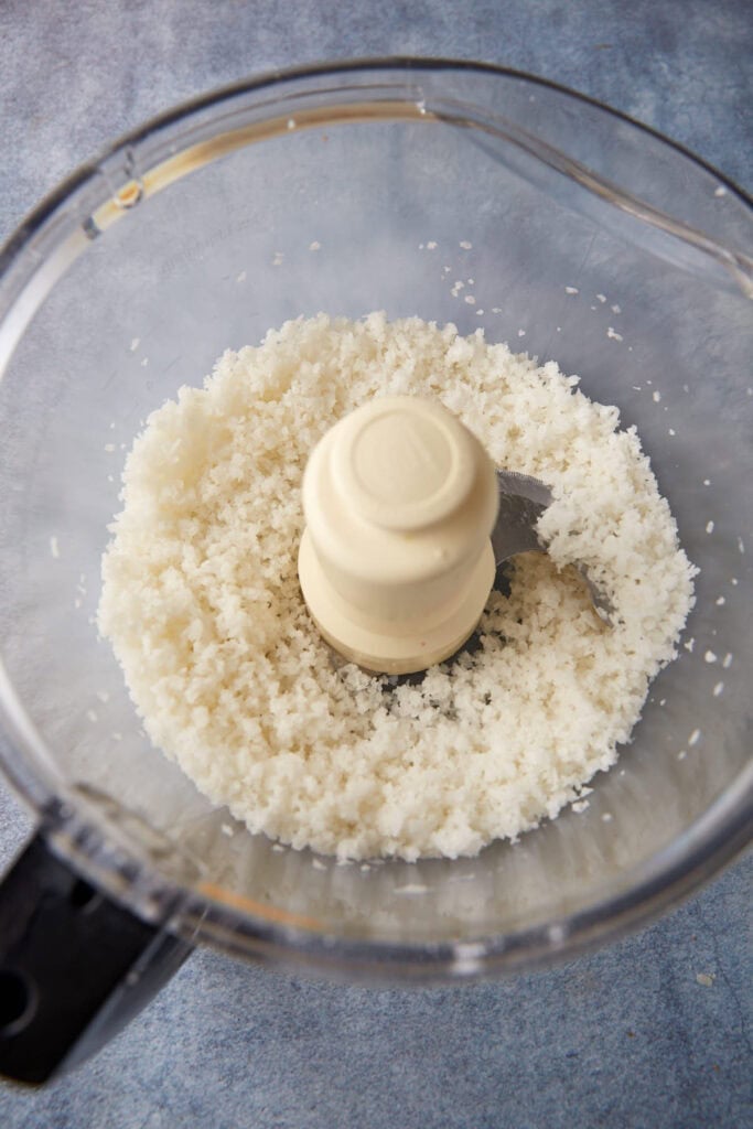 - Add 1 ⅔ cups of coconut to a food processor. Reserve the rest for later. Add sugar and process until finely chopped. Shake the can of cream of coconut until well blended, stir if needed. Add ¼ cup of the cream of coconut to the food processor, add cream cheese and process until blended. Add egg, lemon juice and salt and blend until well combined. Pour into a small bowl, cover with plastic wrap and refrigerate for at least 3 hours.