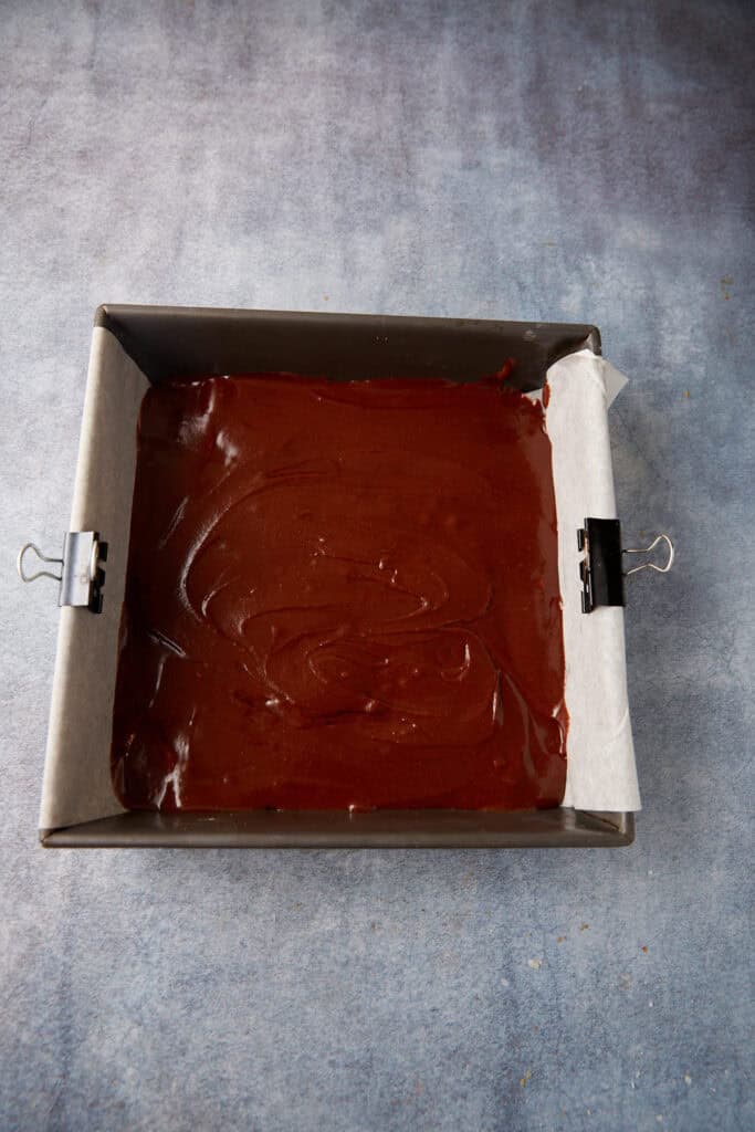 - Line the baking dish with parchment paper so the brownies lift right out.