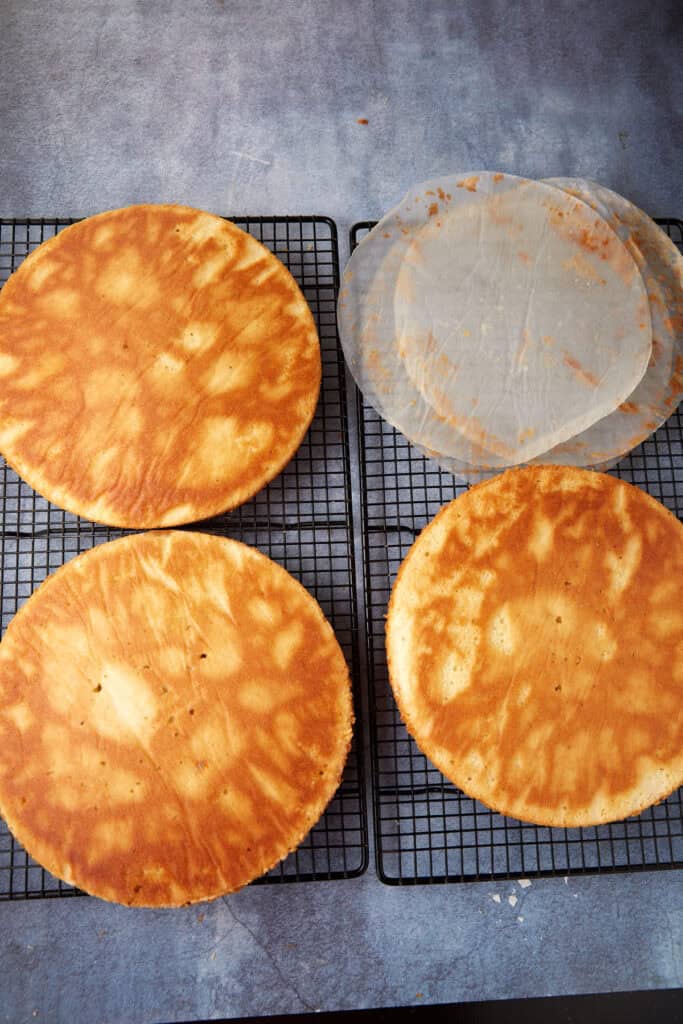 - Place on a cooling rack for 15 minutes then remove from the pans and let cool completely before frosting.