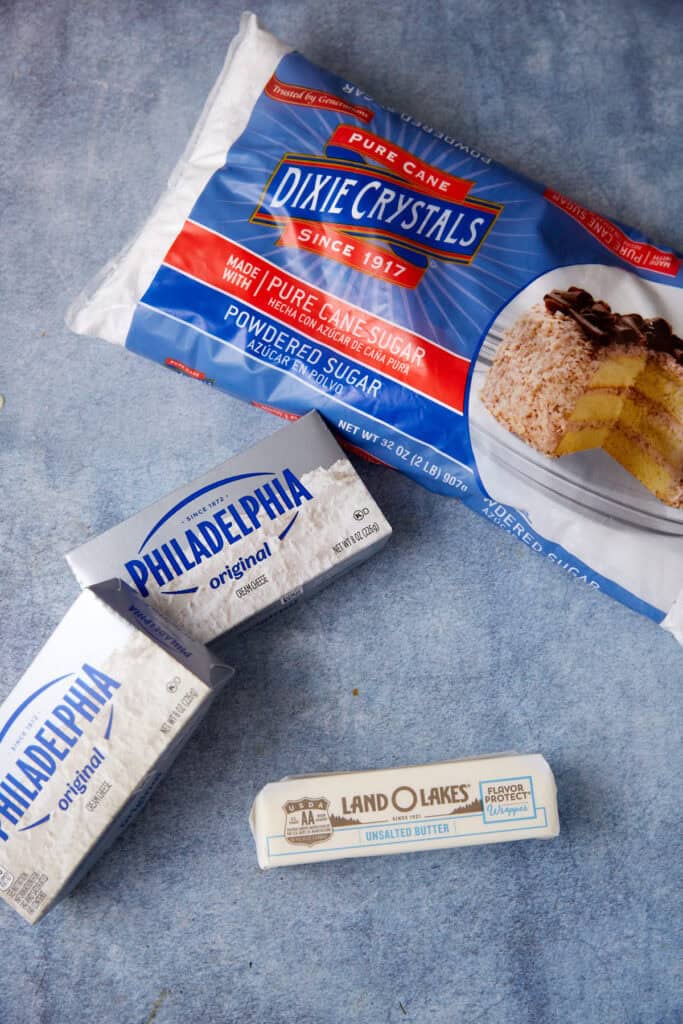 - Cream cheese: You’ll need brick-style cream cheese, not the spreadable kind that comes in a tub.