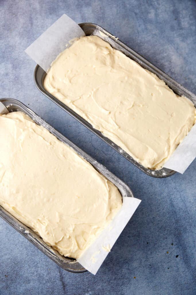 Pour the batter into greased loaf pans and bake in the preheated oven until a toothpick comes out clean. Let the cakes cool a bit in the pans before removing them to cool completely on a rack. The top will crack once it cools.