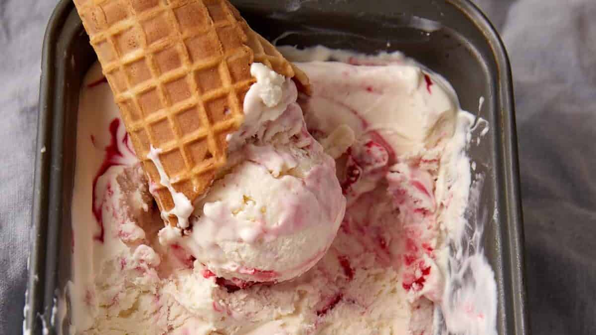 No-Churn Raspberry Ripple Ice Cream