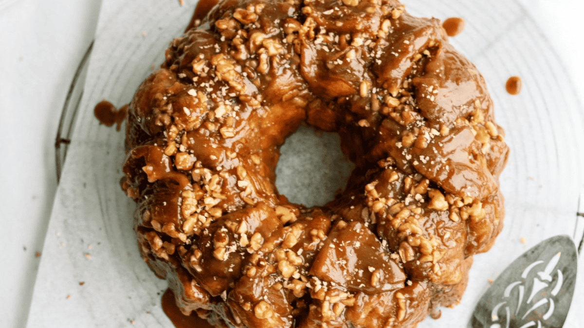 This Monkey Bread Recipe is one for the books! Biscuit dough rolled in cinnamon sugar and baked with a sticky cream and brown sugar sauce.