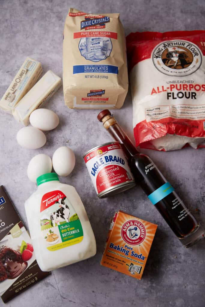 - Buttermilk: Reacts with the baking soda to give the cake a tender, moist texture. If you don’t have any, learn how to make your own buttermilk at home.