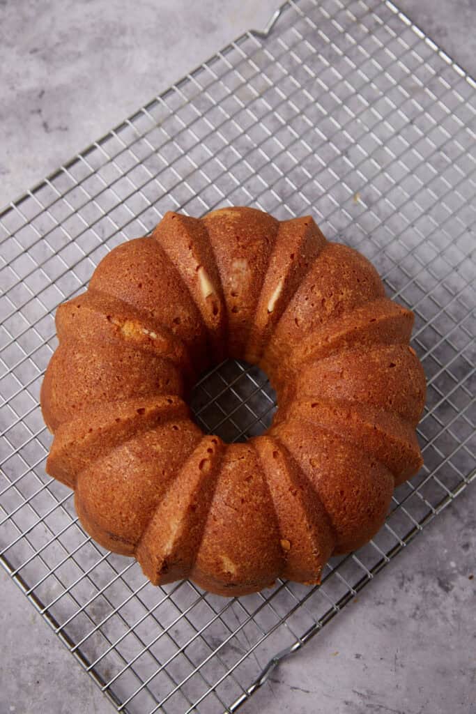 - Bake for 60-70 minutes until a toothpick comes out clean. Let cool on a wire rack for 20 minutes then invert the cake and allow it to cool completely.