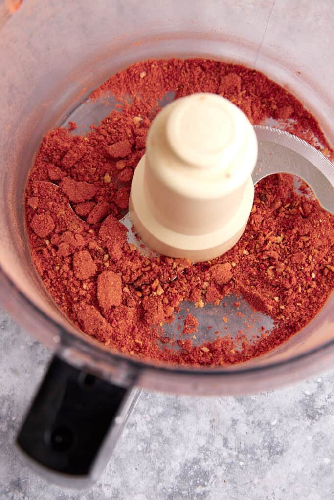 - In a food processor, grind the dried strawberries, you will get about ½ cup of powder. Add cream cheese and butter and process until creamy. Add powdered sugar and vanilla and process until smooth.