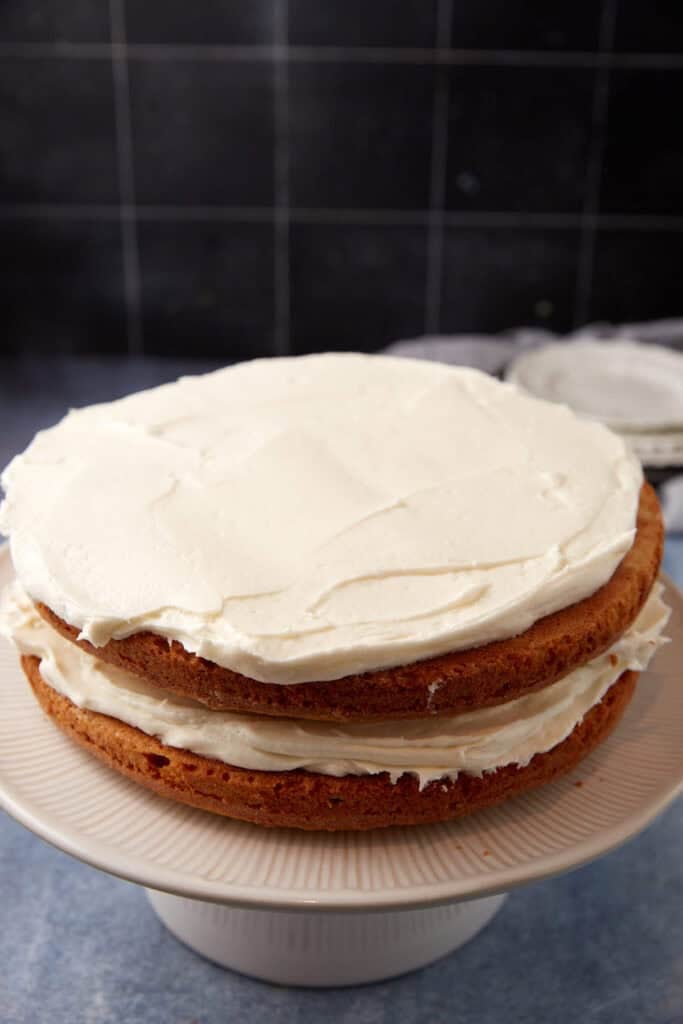 - Cool: Make sure the cake is completely cooled before adding the frosting, you can even frost the layers frozen.
