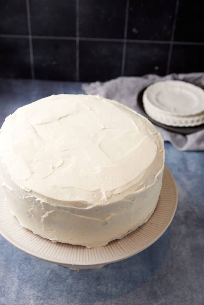 - Piping: If you want a pretty presentation, try chilling the frosting in the fridge to firm it up a bit before piping it onto the cake. If you don’t feel like piping, just spread the frosting on the cake however you like.