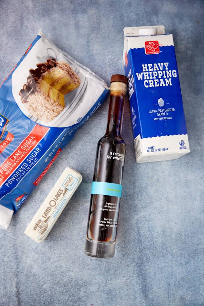 - Use an electric mixer to cream the butter. Add salt and vanilla and mix to combine. Gradually add powdered sugar until it is combined. Add the cream a tablespoon a time until it reaches the consistency you want. Continue beating until light and fluffy, about 3 minutes.